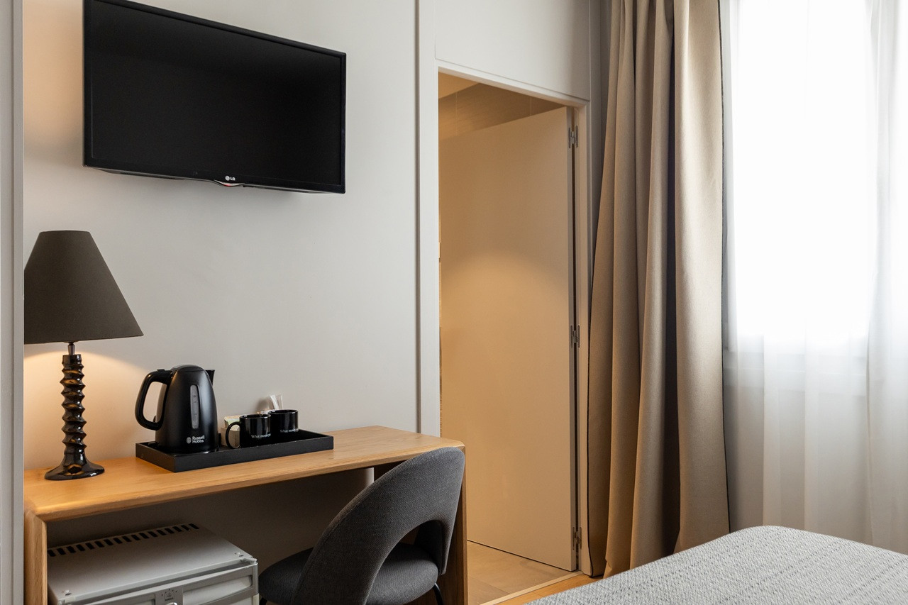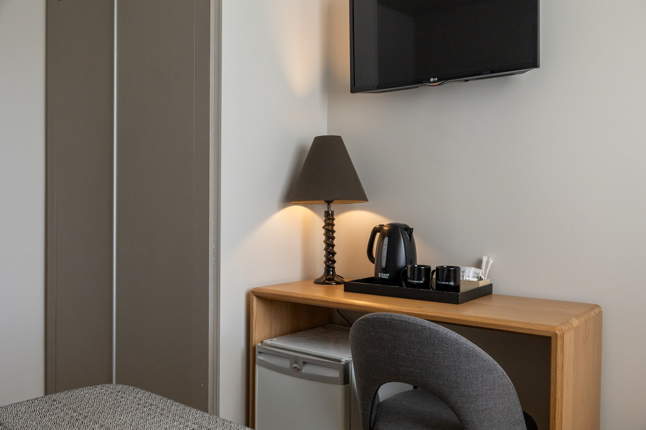 Una estancia funcional de 14 m² pensada para quienes buscan comodidad y sencillez en el corazón de San Sebastián. Equipada con cama doble, su diseño sobrio y acogedor crea un ambiente relajado para descansar tras un día de exploración.